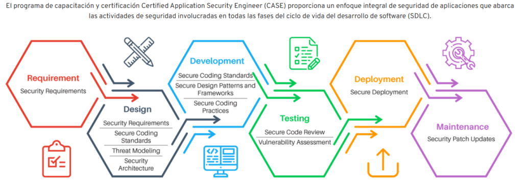A diferencia de otras formaciones en seguridad de aplicaciones, CASE va más allá de las simples directrices sobre prácticas de codificación segura e incluye la recopilación segura de requisitos, un diseño sólido de aplicaciones y la gestión de problemas de seguridad en las fases posteriores al desarrollo de aplicaciones.