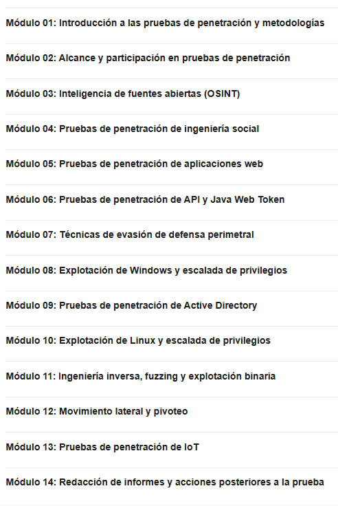 El único programa que enseña una metodología completa de pruebas de penetración